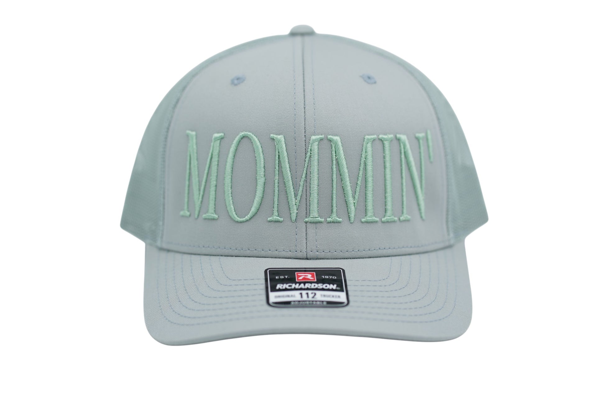 Celebrate everyday motherhood in style with the MOMMIN' Richardson Trucker Hat. Featuring a soft gray crown with raised mint-green puff embroidery, this cap blends comfort, confidence, and clean aesthetic appeal — perfect for busy moms who want to look great on the go.